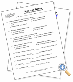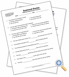 These are reading comprehension questions to go along with the passage. There are three types of questions that can be selected, and the page will be randomly filled with those types.