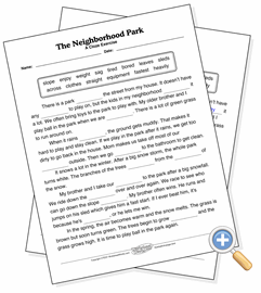 A cloze exercise is one in which certain words of a passage are removed and the student is required to put them back in the right place. This activity tests the student’s ability to understand the vocabulary and context. The words removed from the text are the vocabulary words from the reading.