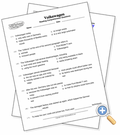 These are reading comprehension questions to go along with the passage. There are three types of questions that can be selected, and the page will be randomly filled with those types.